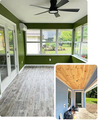 Completed remodeling and repair projects across kitchens, bathrooms, additions, and roofing.